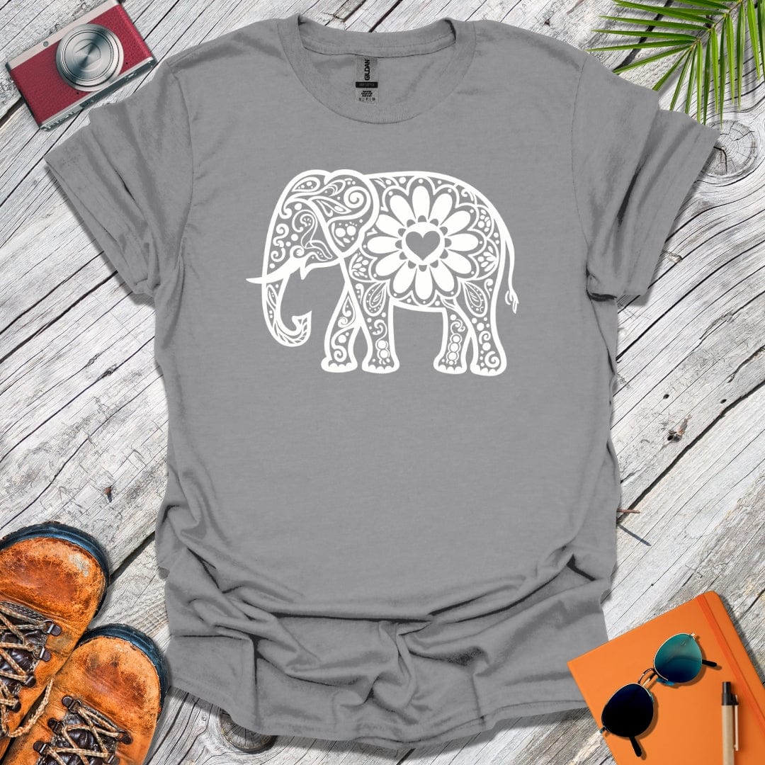 White Mandala Elephant T-Shirt